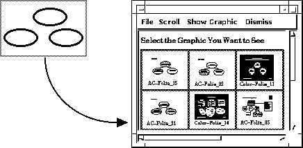 A graphical retrieval based on an inexact sample is also an appropriate means of finding relevant examples for a design task. The user sketches the major components of a graphics and the search component finds similar graphics by searching a graphical data base with professionally designed samples. This facility complements the generation and beautification components in areas where no relevant knowledge could be acquired and formally represented.